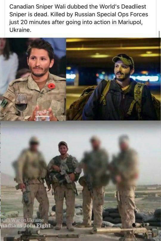 Rumours are flooding social media that famous Canadian sniper Wali who joined the Ukraine war effort this week is dead following fighting in the city of Mariupol. He crossed over from Poland sheltered in a renovated home before joining the Ukrainian military and citizen soldiers reports the Canadian Broadcasting Corporation. The death of Canadian sniper Wali is making the rounds on the internet notably on Twitter and other social media platforms.