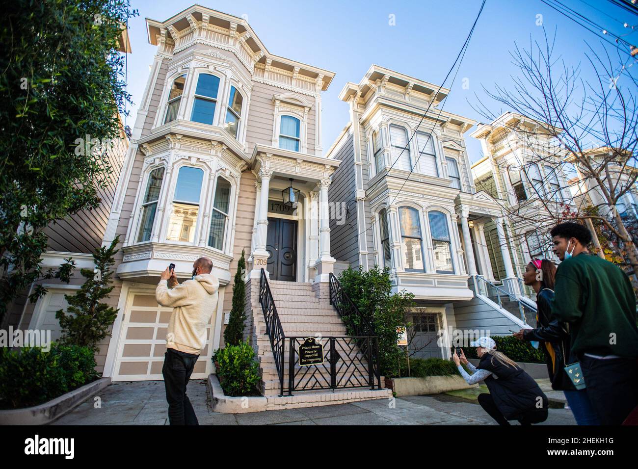 San Francisco United States 10th Jan 2022 People Gather To Take Photos In Front Of The Full House House At 1709 Broderick Street On January 10 2022 In San Francisco California The